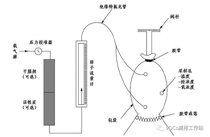 1)实测法是将每一个点位进行包袋法实测处VOCs排放量,该方法是接近真实排放量的核算方法,如下图所示。但该方法不适用于密封点数量多的LDAR项目排放量核算,因为石化企业十几万个点不可能一个点一个点进行包袋并实测,哪怕几千点的超小型企业也无法实现;