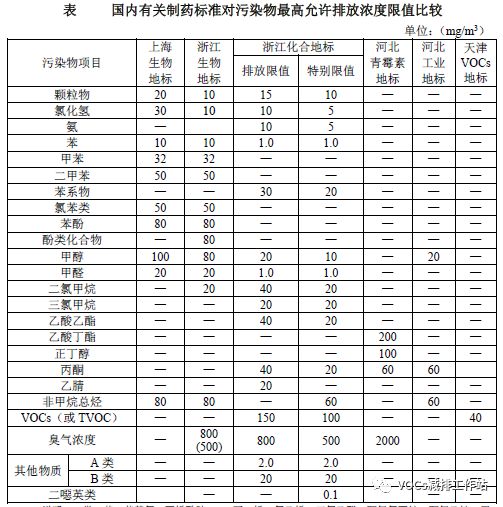 VOCs治理技术 |行业(六):国内制药工业VOCs治理标准及排放限值对比汇总