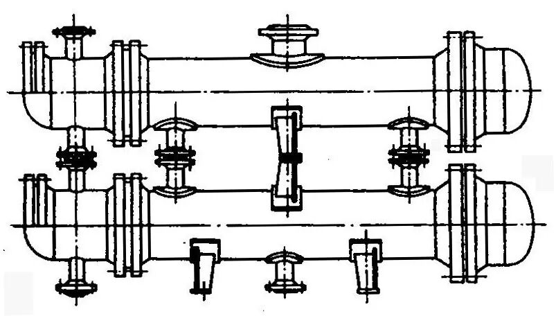 图23-17和图23-18为在第三版《化工工艺设计手册》中所示浮头式冷凝器。在冷凝器中有不凝气积聚点。