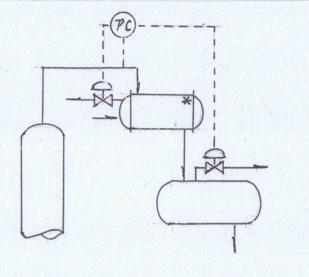 在手册中对精馏塔压力的自控设计,分有三种情况:
