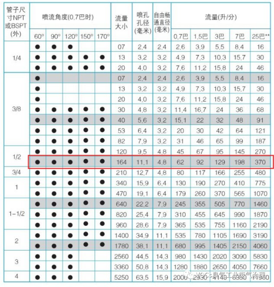 4、喷淋塔喷嘴参数