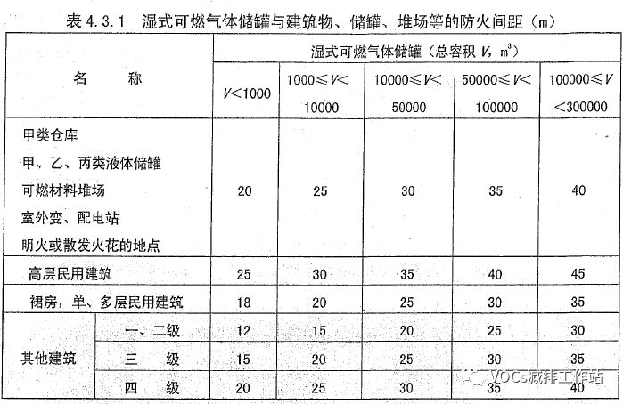 与湿式可燃气体储罐的fang火间距至少为20m,